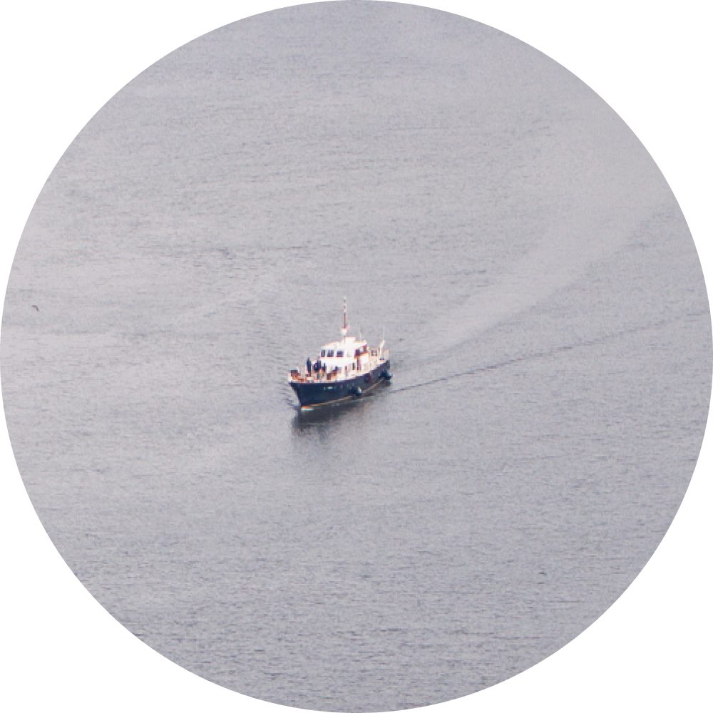 by car, helicopter, or boat